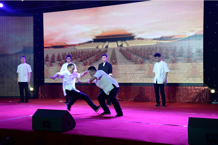 為了給天信二十周年生日獻(xiàn)禮,天信儀表集團(tuán)文藝隊(duì)成員給各位嘉賓和員工們準(zhǔn)備了一臺堪稱專業(yè)級的文藝晚會(huì),12個(gè)內(nèi)容豐富、形式新穎的精彩節(jié)目,竟全是員工們利用業(yè)余時(shí)間精心編排和創(chuàng)作的。在所有人的期待中,一曲震憾人心的鼓舞敲響了本場晚會(huì)的第一音符,激情四射、強(qiáng)勁有力的鼓舞,一開場便博得了滿堂彩,給觀眾留下了深刻而難忘的印象。抒情高亢的獨(dú)唱、合唱表演,將觀眾帶進(jìn)了另一個(gè)如癡如醉的美好世界,給人耳目一新的視聽震撼。婀娜歡快的印度舞蹈讓臺下觀眾驚訝不已,原創(chuàng)小品《天信新聞播報(bào)》令觀眾開懷大笑。聲情并茂的詩朗誦、清新深情的吉他彈唱、剛勁有力的武術(shù)表演、優(yōu)雅性感的旗袍走秀、員工子女才藝表演,每一個(gè)節(jié)目都深深地感染著現(xiàn)場的每一個(gè)人,整臺文藝晚會(huì)節(jié)奏明快、環(huán)節(jié)緊扣、場上場下互動(dòng)熱烈、嘉賓情緒高漲,雄渾高亢的歌聲、細(xì)膩柔美的舞蹈、繽紛亮麗的燈光、激情澎湃的畫面,感染著每一位身臨其中的人。員工們紛紛掏出手機(jī),記錄下這精彩的片刻。