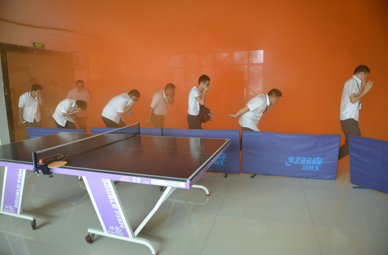 著火了,請大家馬上撤離現(xiàn)場,2016年7月6日上午10點,天信儀表集團二樓大型會議室出口,響起了陣陣叫聲。而此時,會議室里面,有100多名員工正在接受現(xiàn)場培訓。很快,紅色刺鼻的煙霧繚繞淹沒了走廊和樓道,火警警報也在廠區(qū)里鳴起,情況十分危急。只見所有員工,面帶嚴肅,沒人說笑,沒人擁擠,捂著口鼻,貓著身體,快速有序地逃生撤離事實上,這并不是真的火災,而是天信儀表集團聯(lián)合蒼南縣消防大隊開展的一次消防演練。