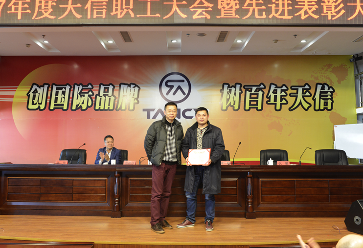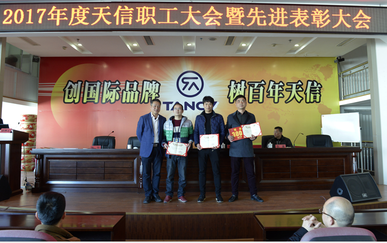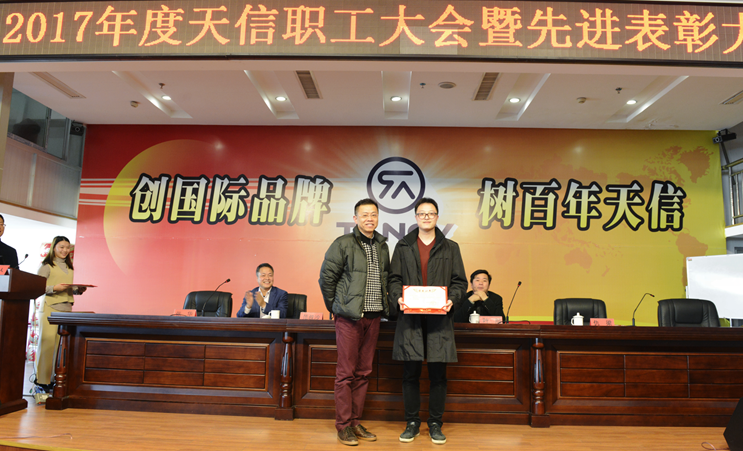 2月5日,2017年度天信職工大會(huì)暨先進(jìn)表彰大會(huì)在公司二樓大型會(huì)議室召開,會(huì)議由副總裁張華主持,公司總裁范叔沙,副總裁葉朋、仇梁以及全體員工共360多人參加。本次會(huì)議既是一次總結(jié)表彰會(huì),也是一個(gè)繼往開來的動(dòng)員會(huì)。
